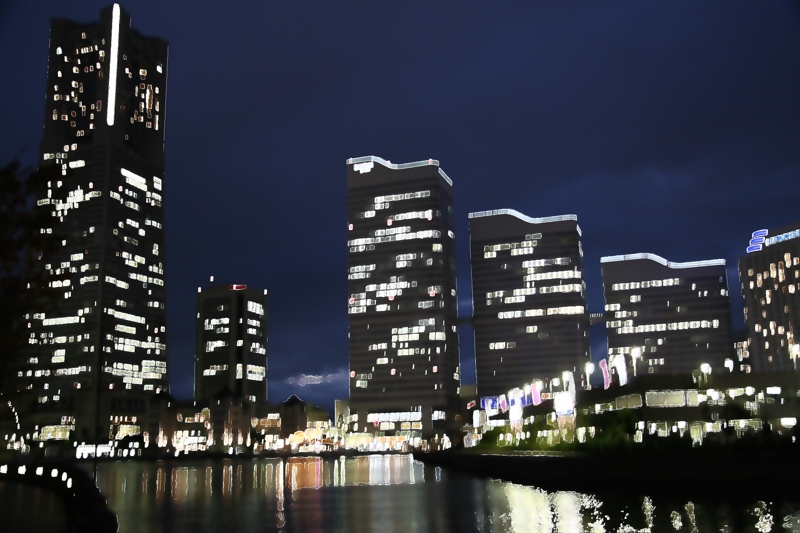 すっかり暗くなり,汽車道を夜景を楽しみながらランドマーク、帆船日本丸メモリアルパークまで歩いた。 冷たくピーンとした夜空に向かって光が灯っている。灯っている。