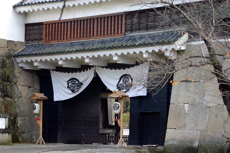 本丸へはここから入る。最も重要な門なので扉や柱に鉄を張り補強したため、鉄門とよばれる。